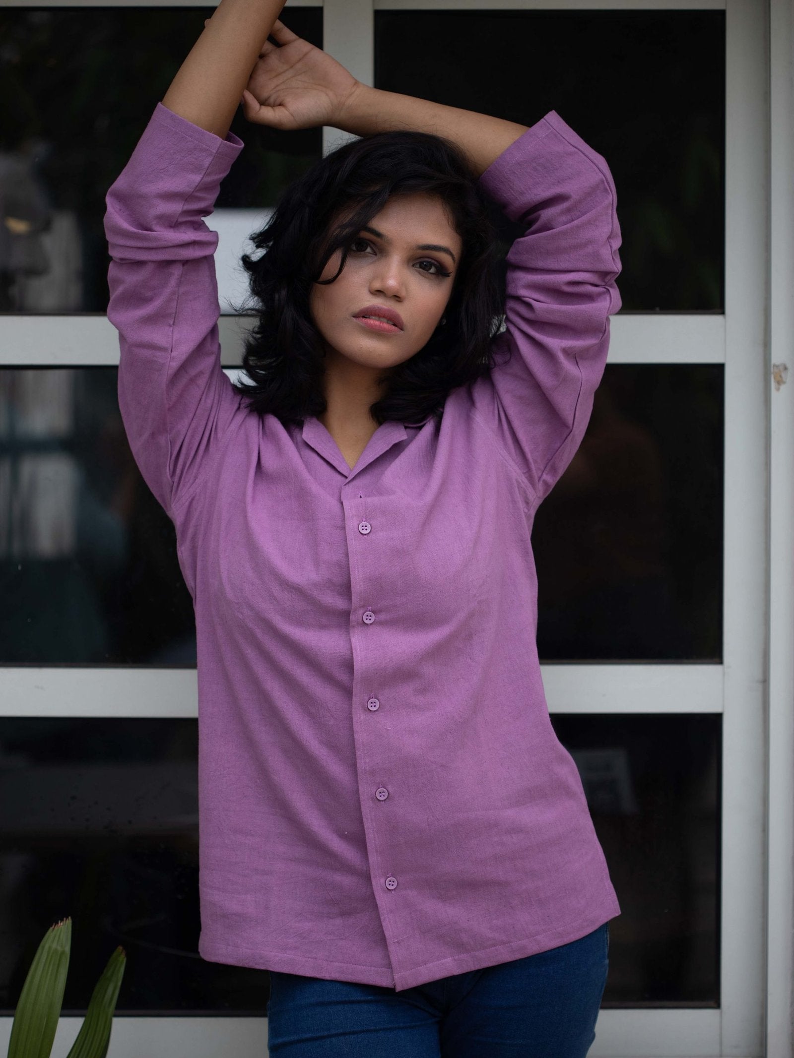 Expertly crafted with fine lavender cotton, this Auran shirt features full sleeves and a Cuban collar for a stylish and comfortable fit. Perfect for any occasion, this shirt combines softness with durability for a timeless addition to your wardrobe. Make a statement with Auran.