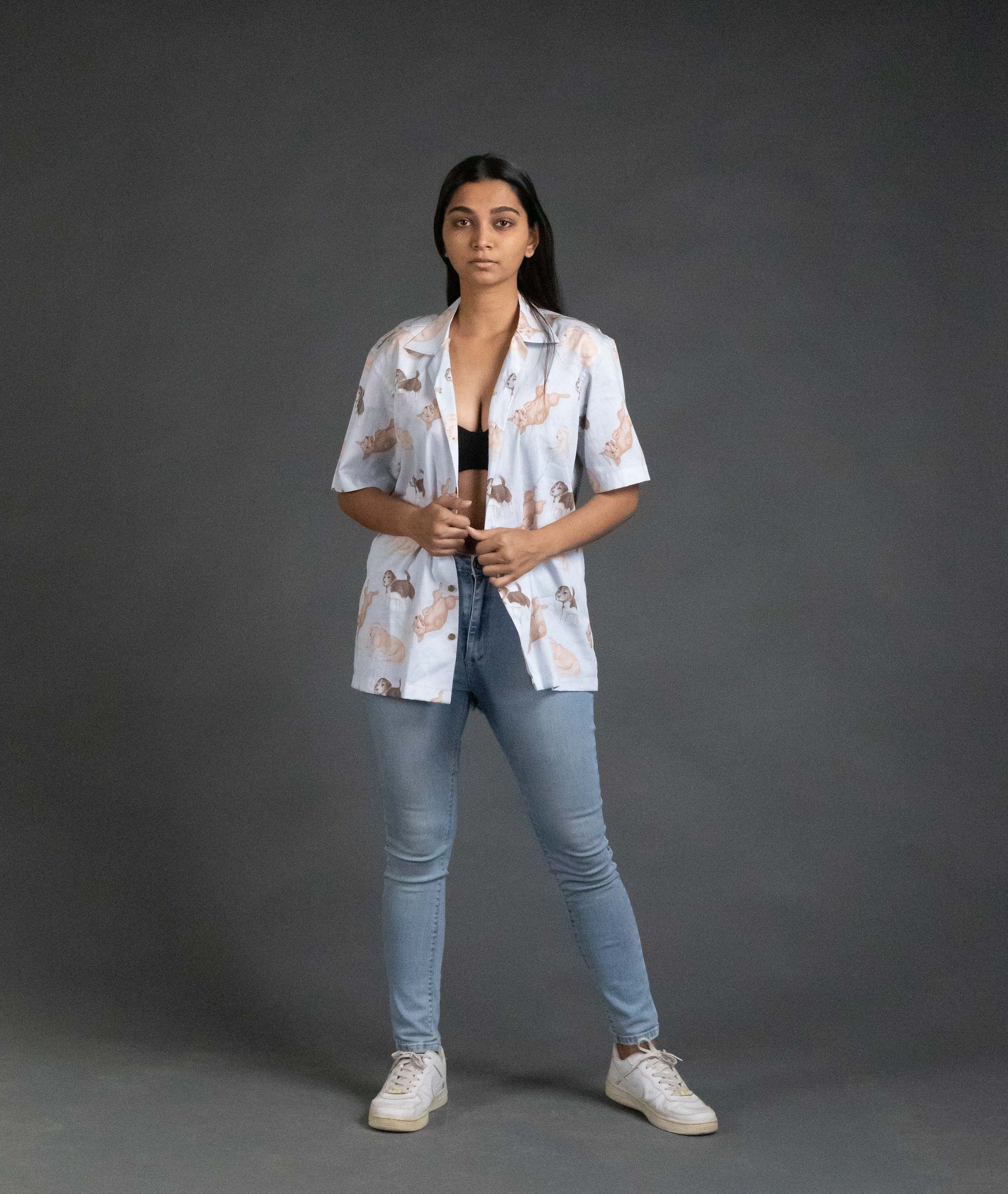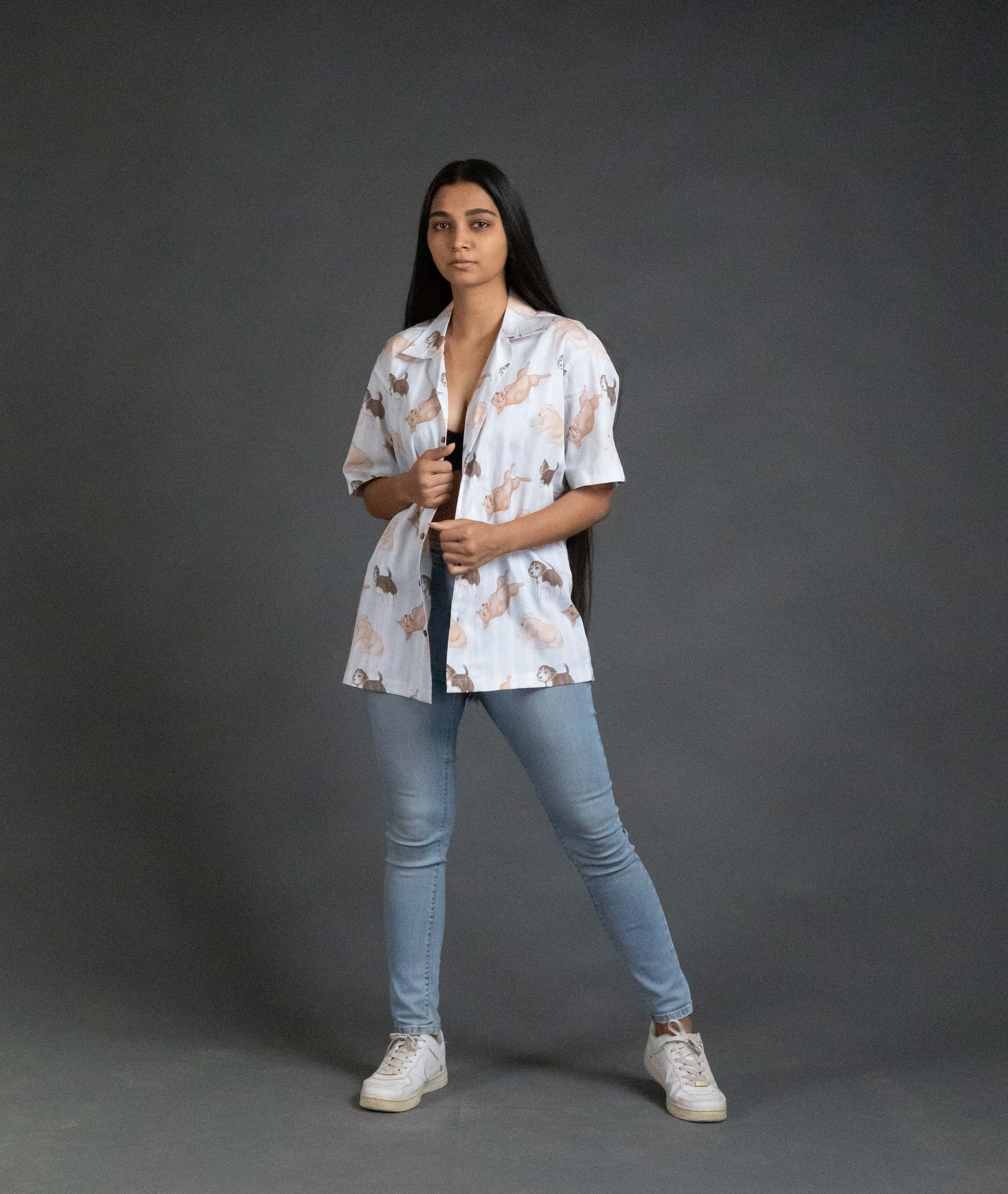 Introducing our stylish half sleeve cotton shirt featuring a cute dog print. Made with high-quality cotton, this shirt is comfortable and breathable. Perfect for a casual look or any outdoor activity.