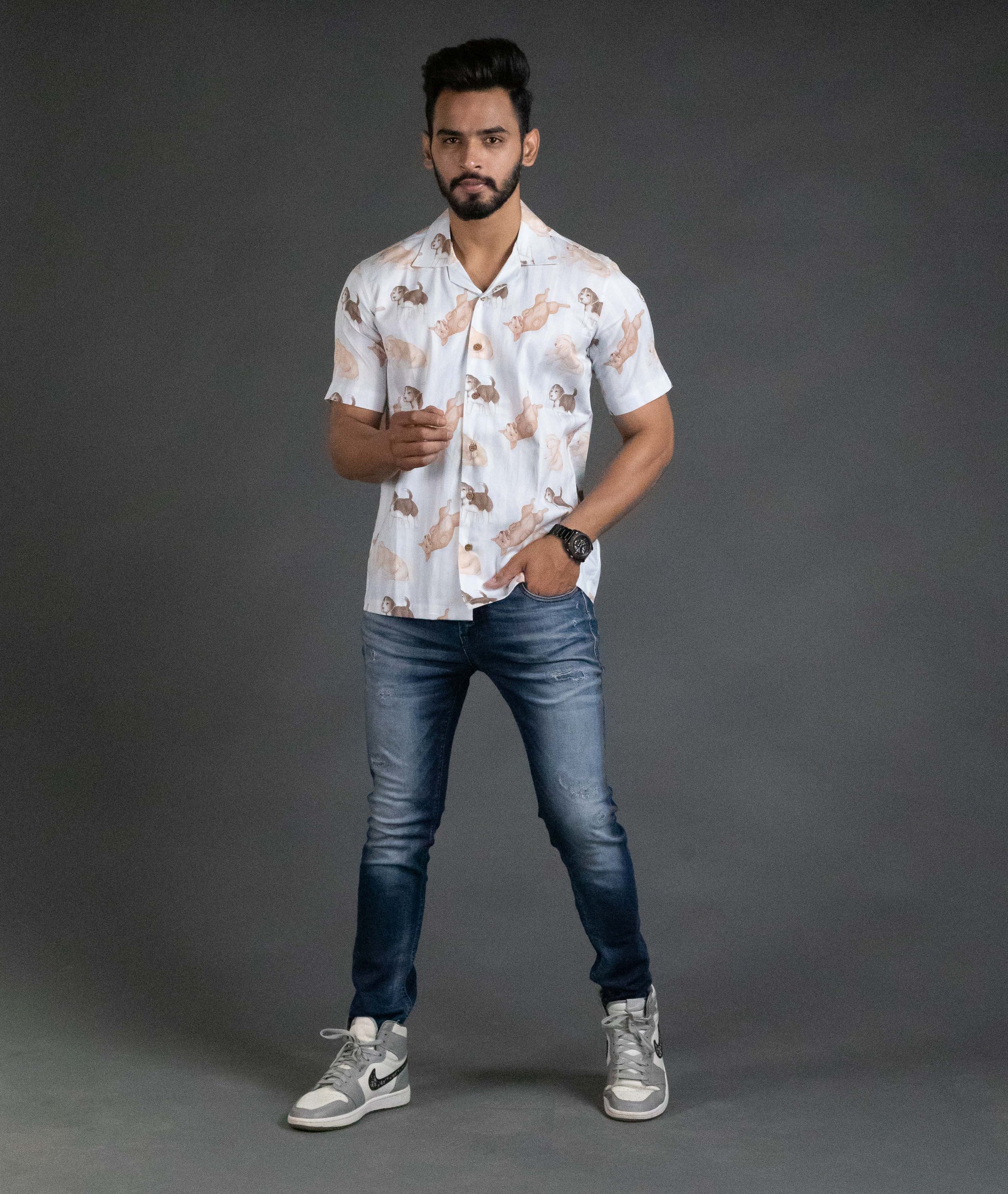 Expertly crafted with 100% cotton, this dog printed shirt is both stylish and comfortable. With half sleeves and coconut shell buttons, it is perfect for any casual occasion. Show off your love for dogs with this unique shirt.