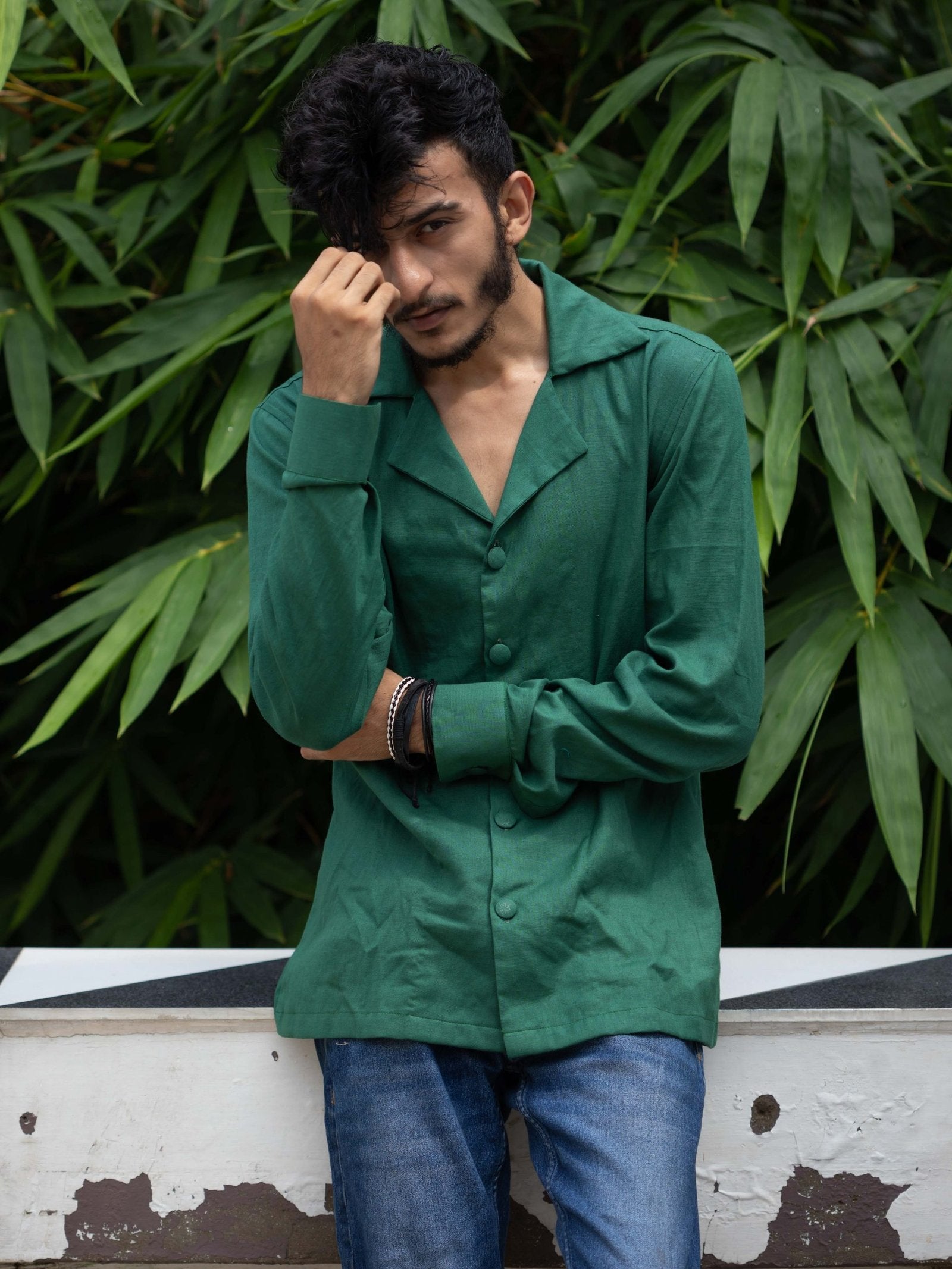 Introducing our Fihran shirt, crafted from high-quality dark green cotton for a professional and polished look. This shirt features full sleeves and fabric self buttons, providing both comfort and style. Expertly designed for any occasion, this shirt is a must-have addition to your wardrobe.