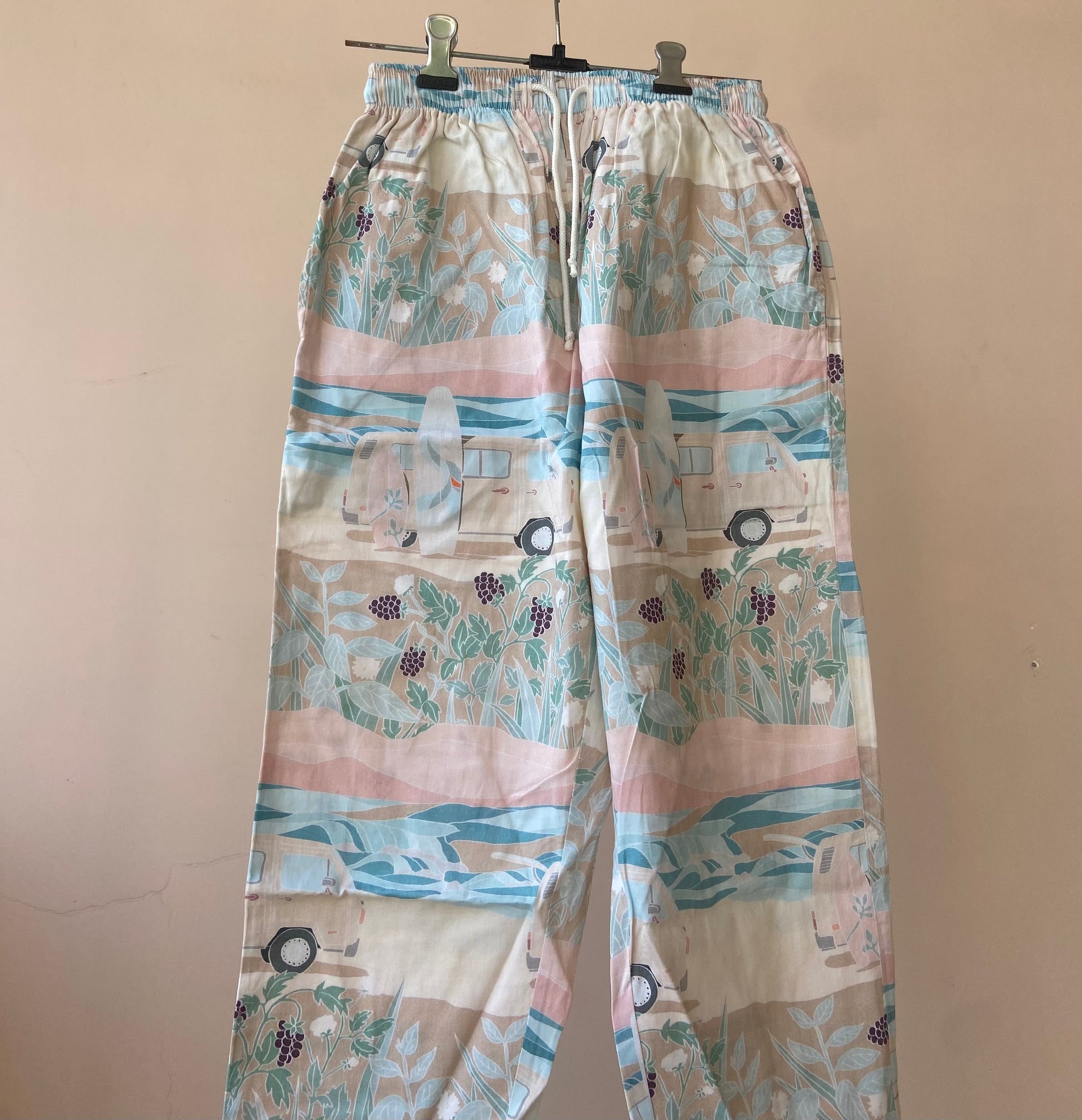 Stay comfortable and stylish on your next road trip with our Monochrome Van Life Pants. Made with 100% printed cotton, these pants are perfect for long hours on the road. The monochrome design adds a touch of adventure to your wardrobe. Get ready to explore in style!