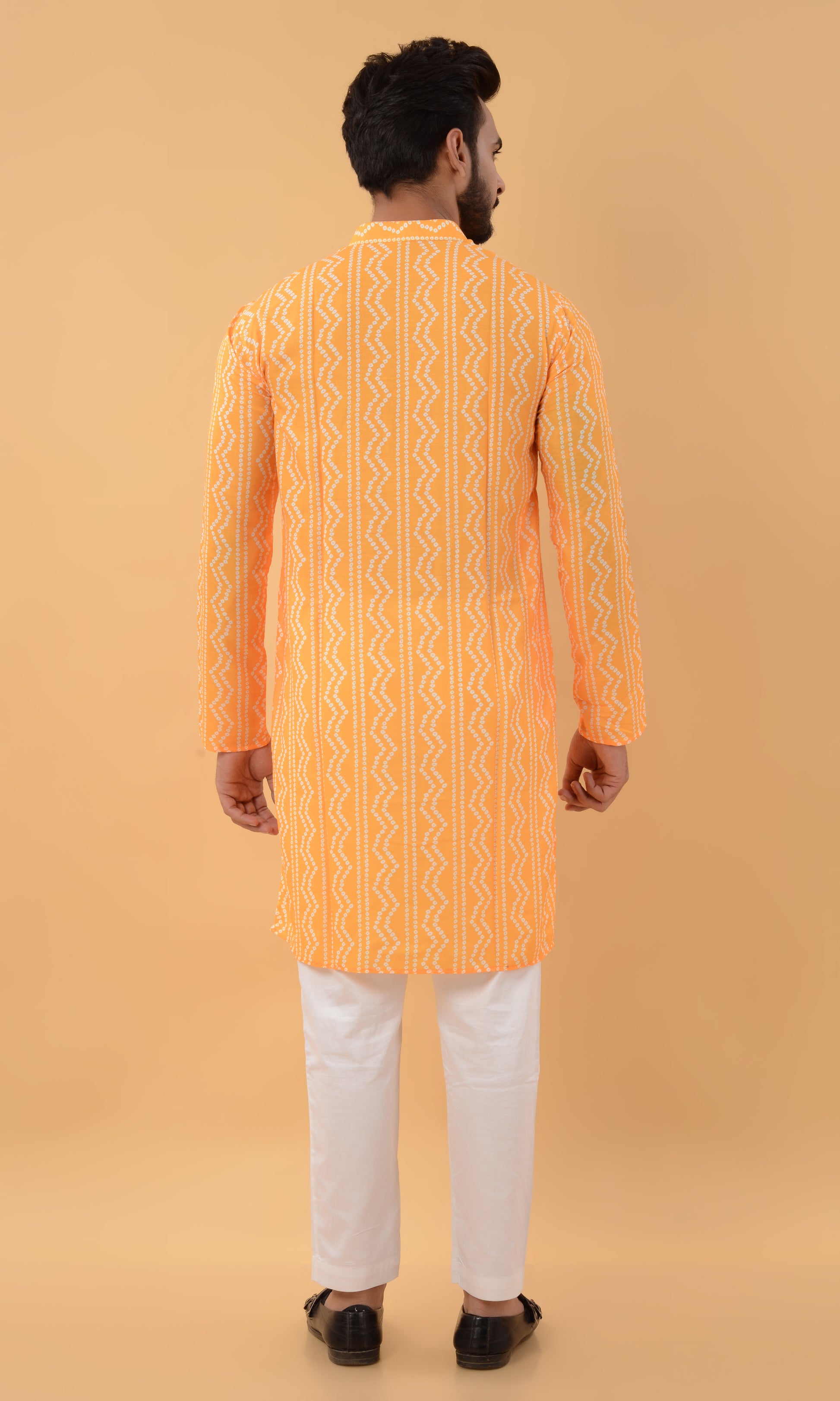 This yellow bandhani kurta is made of high-quality cotton, providing a comfortable and breathable experience. The traditional bandhani pattern adds a touch of elegance and cultural heritage. The perfect addition to any wardrobe. Take advantage of the fine cotton material for a stylish yet comfortable look.